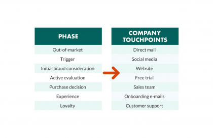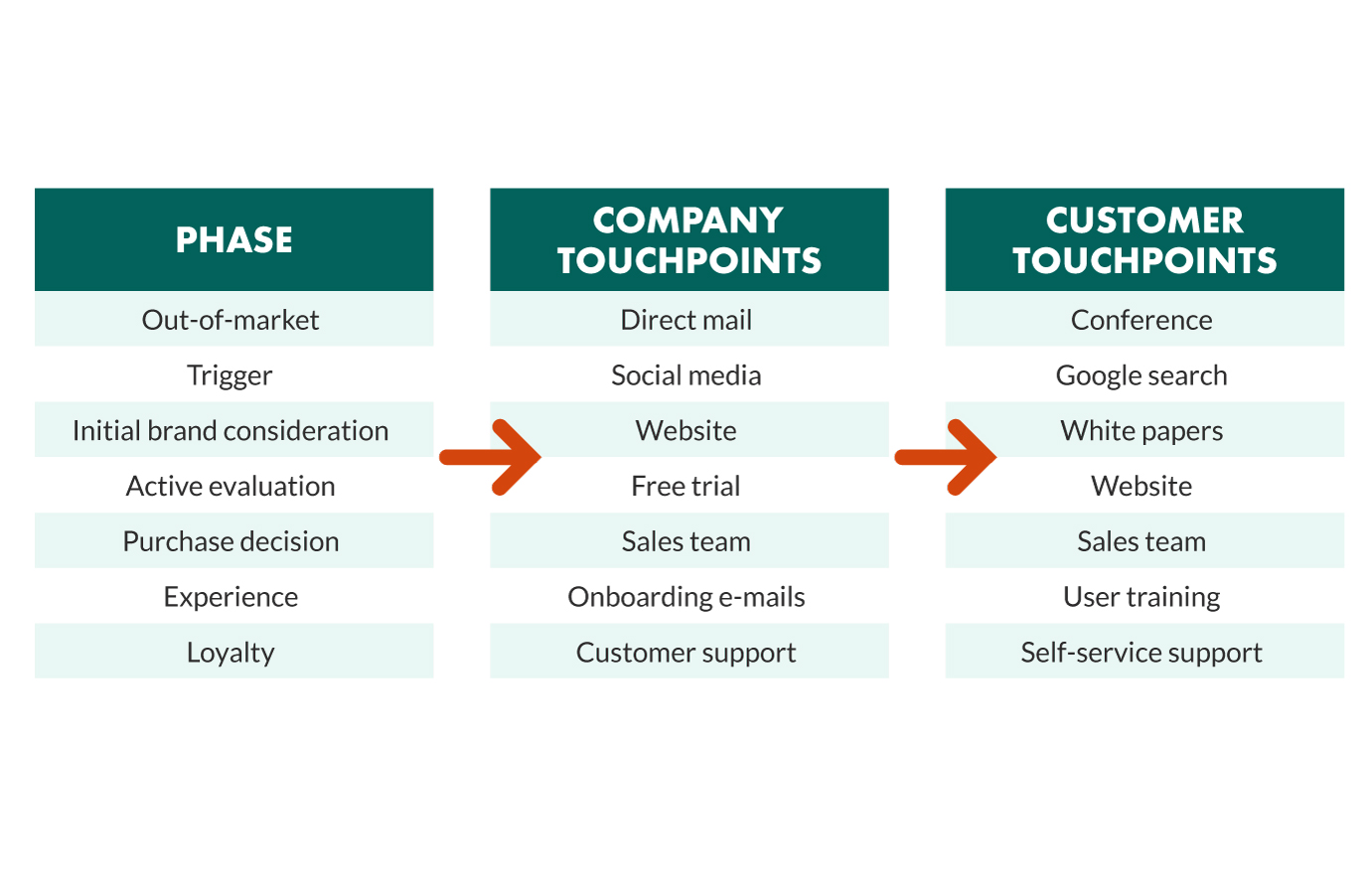 在下面的示例中,我們將基于 B2B 客戶的旅程來探索接觸點。