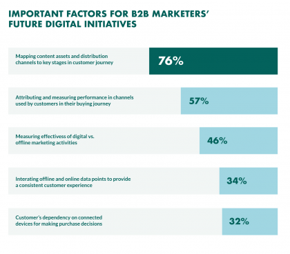 Regalix 的一項調(diào)查顯示,繪制接觸點,并在旅程的每個階段都放置正確的內(nèi)容資產(chǎn)和分發(fā)渠道是?未來數(shù)字計劃的最重要因素之一。