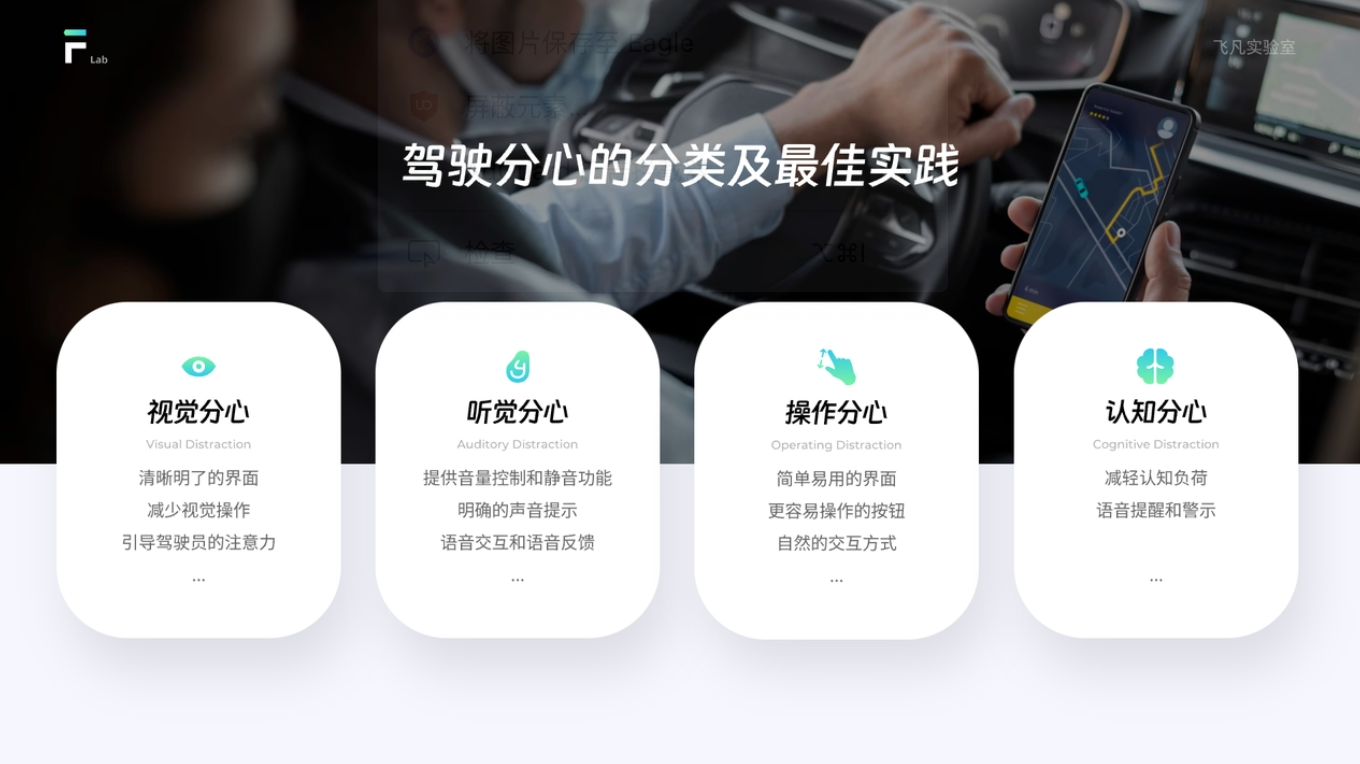 通過了解和分類駕駛分心,我們可以更有針對(duì)性地設(shè)計(jì)車載界面,減少駕駛員的分心情況,提高駕駛的安全性和效率。同時(shí),提供合適的駕駛輔助功能和注意力提醒,可以幫助駕駛員更好地集中注意力,降低事故風(fēng)險(xiǎn)。