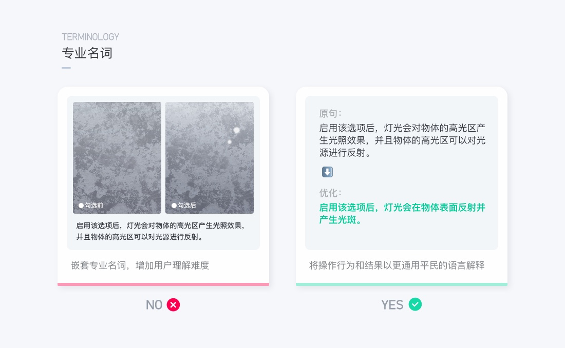 專業(yè)名詞:結合善解人意和直率原則,避免讓用戶產(chǎn)生多重疑惑,專業(yè)名稱平民化、通用化