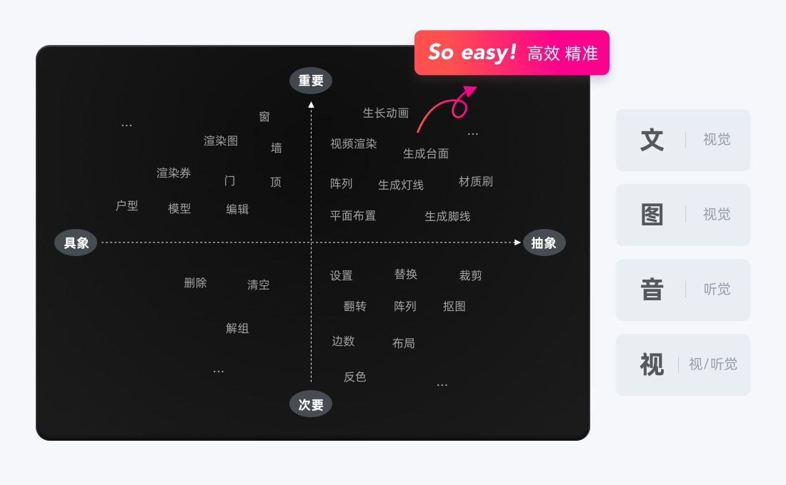 根據(jù)美國哈佛商學院有關研究人員的分析資料表明,人的大腦每天通過五種感官接受外部信息的比例分別為:視覺83%、聽覺11%、嗅覺3.5%、觸覺1.5%、味覺1%(數(shù)據(jù)暫不涉及短視頻直播領域)在群核體系下的產(chǎn)品,圖和文分別是有哪些?