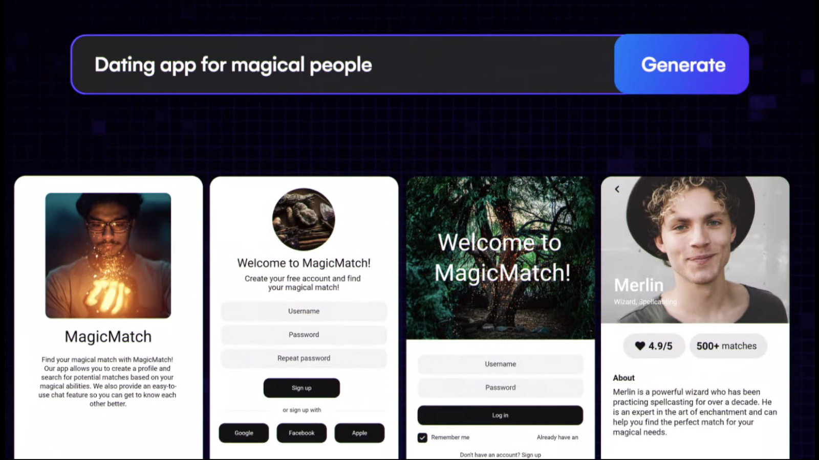 市面上有UIzard、Galileo、即時設(shè)計、Figma等界面設(shè)計工具增加了AI生成界面能力。目前看到的案例能嘗試生成一些高度通用的頁面,如Onboarding page和Delivery app。