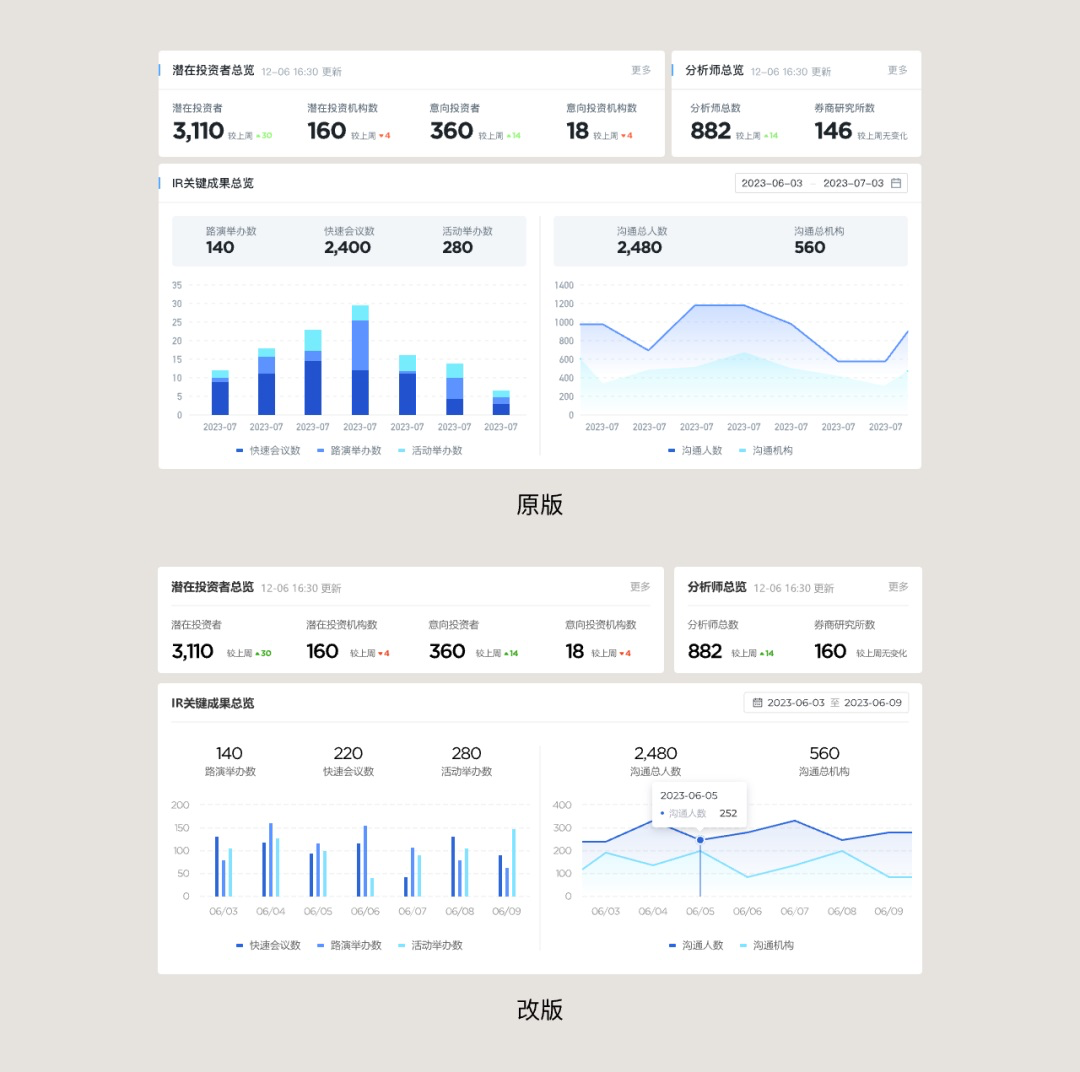 但重要不代表需要過(guò)度傾注和堆疊視覺(jué)元素,過(guò)度的設(shè)計(jì)會(huì)讓界面看起來(lái)有 “飛機(jī)” 敢,不僅不真實(shí)的印象產(chǎn)生了,還會(huì)顯得業(yè)余不夠自信。同時(shí)任何項(xiàng)目中表盤頁(yè)過(guò)度設(shè)計(jì)都會(huì)對(duì)整個(gè)項(xiàng)目造成負(fù)擔(dān),后續(xù)的頁(yè)面要怎么設(shè)計(jì)才能不和它產(chǎn)生隔閡,保持一致性。