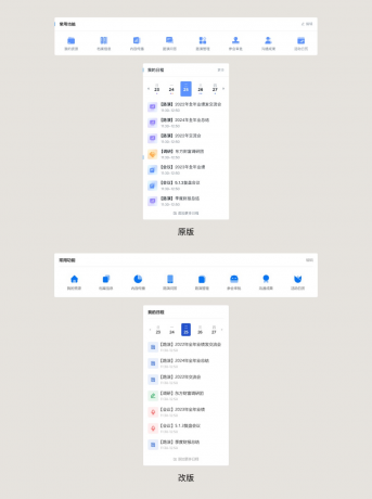 在快速入口和日程模塊中,都有使用裝飾圖標(biāo),顯然大家也能理解他們對(duì)于目前的語(yǔ)境來(lái)講還是細(xì)節(jié)過(guò)多了,所以需要做一些調(diào)整,讓它們簡(jiǎn)化。