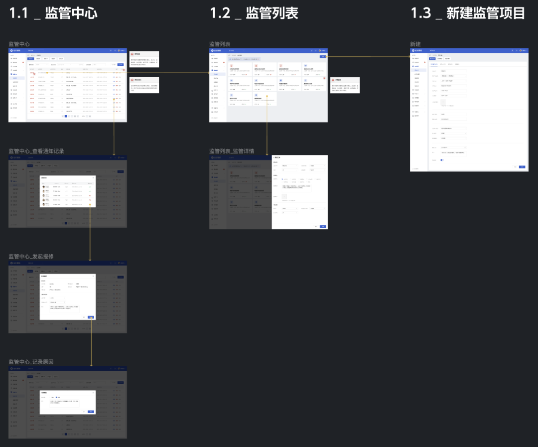 排列頁面時,也需要具有一定的邏輯,橫向一般表示不同的頁面,縱向表示同一個頁面的事件和狀態(tài)。并且橫豎間距盡量保持統(tǒng)一,建議左右不低于 800px,上下不低于200px 的間隔,這樣即不影響后續(xù)添加說明,也不影響前端查看頁面時被其它頁面干擾。
