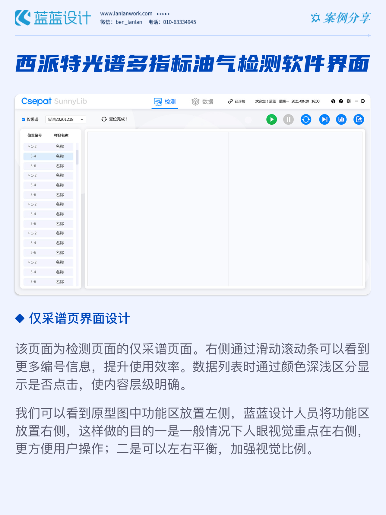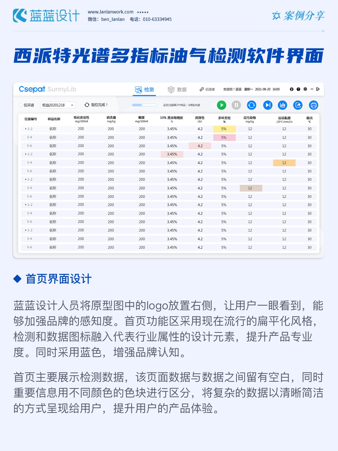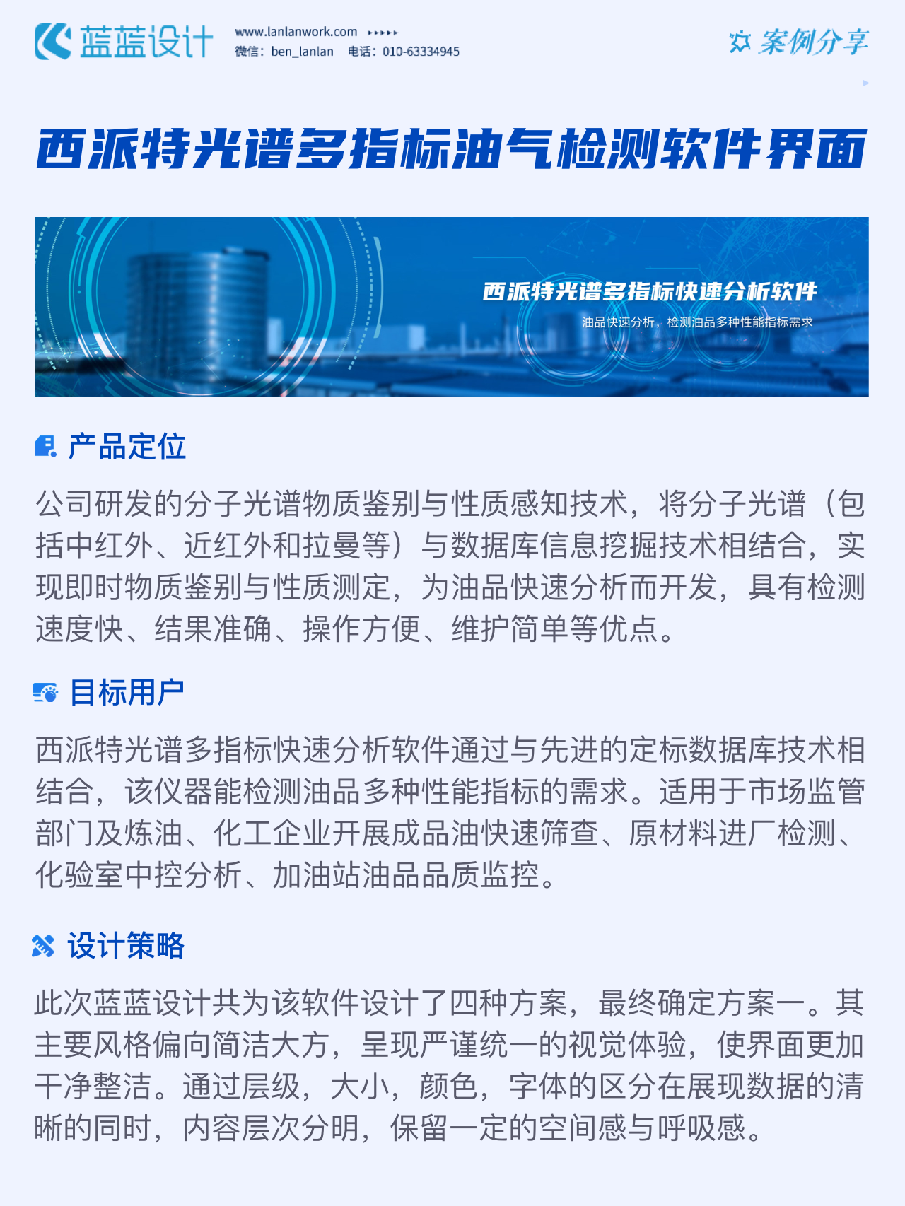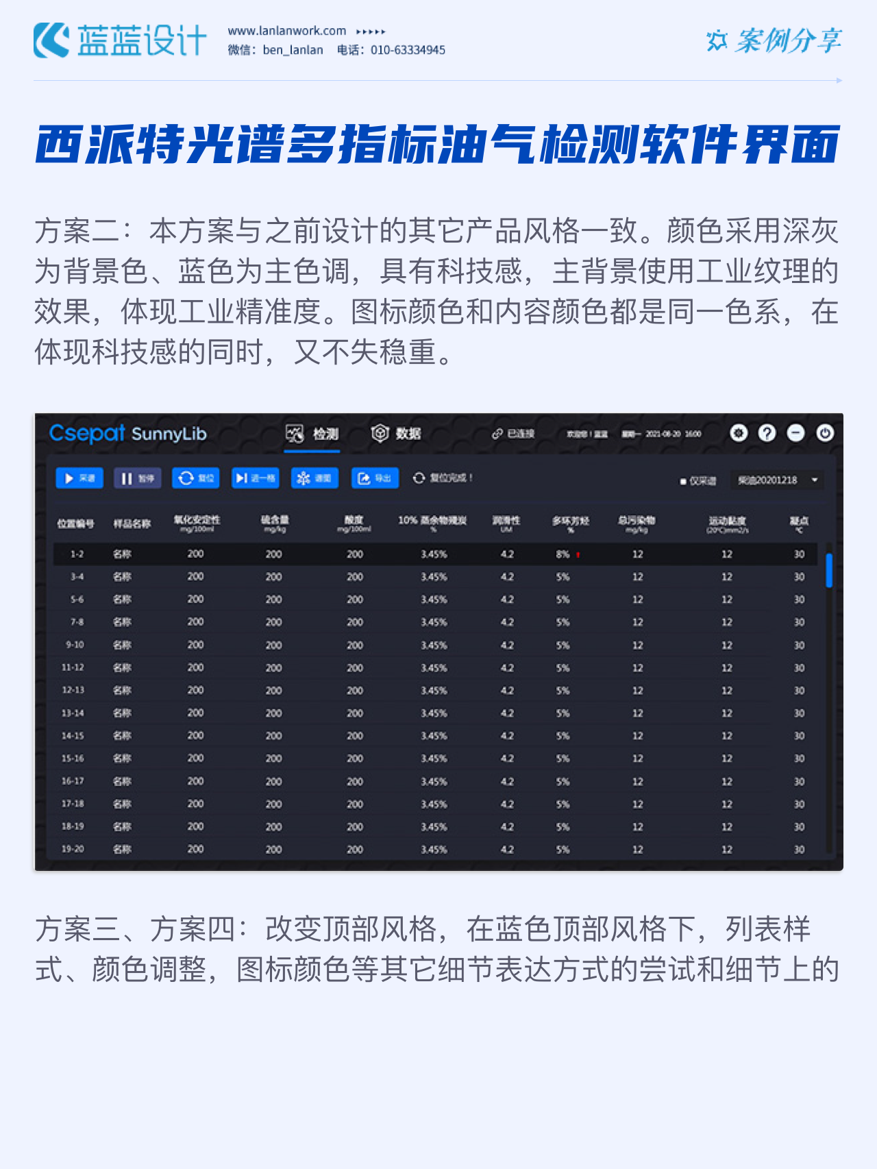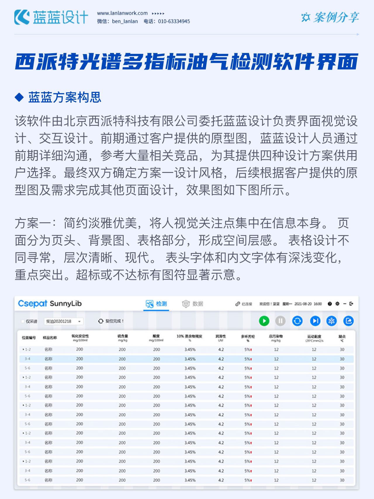 該軟件由北京西派特科技有限公司委托藍(lán)藍(lán)設(shè)計(jì)負(fù)責(zé)界面視覺設(shè)計(jì)、交互設(shè)計(jì)。藍(lán)藍(lán)設(shè)計(jì)人員通過前期詳細(xì)溝通,參考大量相關(guān)競(jìng)品,為其提供四種方案視覺設(shè)計(jì)。最終雙方確定方案一設(shè)計(jì)風(fēng)格,后續(xù)根據(jù)客戶提供的原型圖及需求完成其他頁面設(shè)計(jì)。