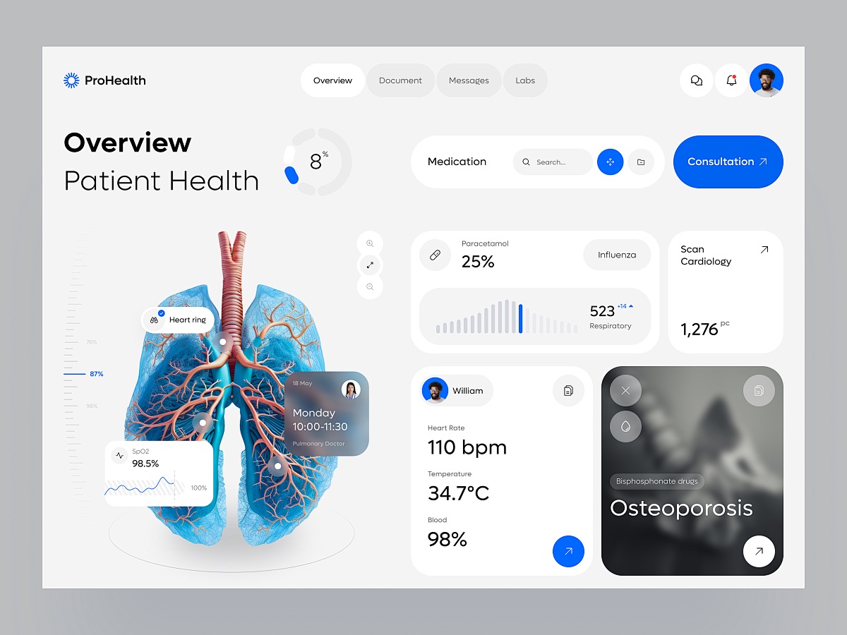 針對患者的醫(yī)療 UI 設(shè)計,功能重點在于信息查詢與服務(wù)獲取?;颊咝枰軌蚍奖愕夭樵冏约旱木驮\記錄、檢查報告、費用明細等信息,因此在患者端的醫(yī)療 APP 或醫(yī)院官網(wǎng)界面上,應(yīng)設(shè)置專門的信息查詢?nèi)肟冢⒁郧逦锥姆绞匠尸F(xiàn)數(shù)據(jù)。同時,提供在線預(yù)約掛號、繳費、藥品配送等服務(wù)功能,實現(xiàn)就醫(yī)流程的線上化,減少患者排隊等待的時間。此外,一些健康管理功能也受到患者的歡迎,如個人健康檔案管理、疾病預(yù)防知識推送、康復(fù)訓(xùn)練指導(dǎo)等。