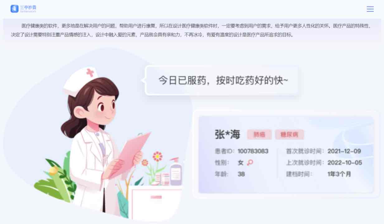 藍藍設計醫(yī)療行業(yè)UI設計方案亮點將從以下幾點展示: