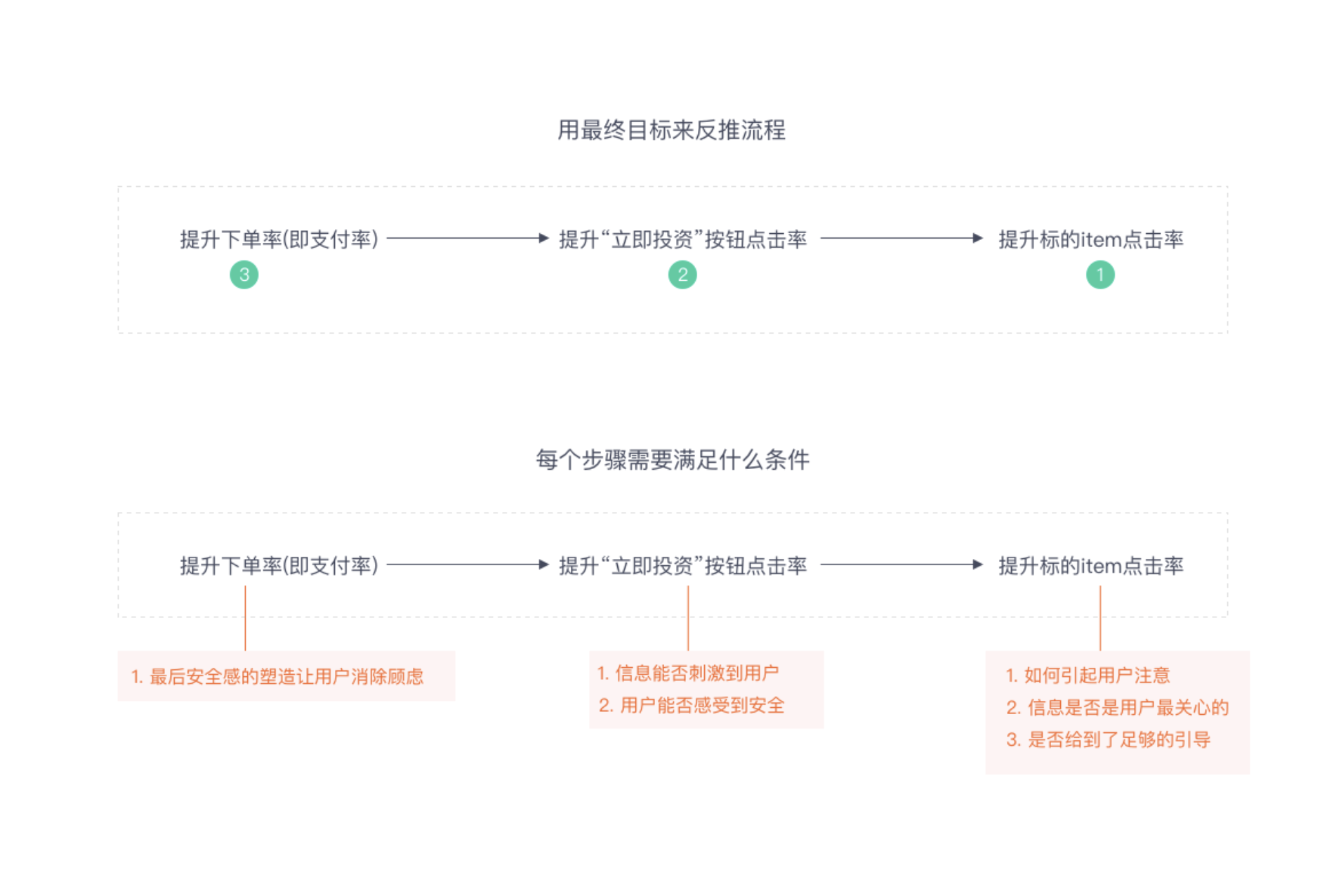 - 以提升下單率為例,分析各環(huán)節(jié)需滿足條件: