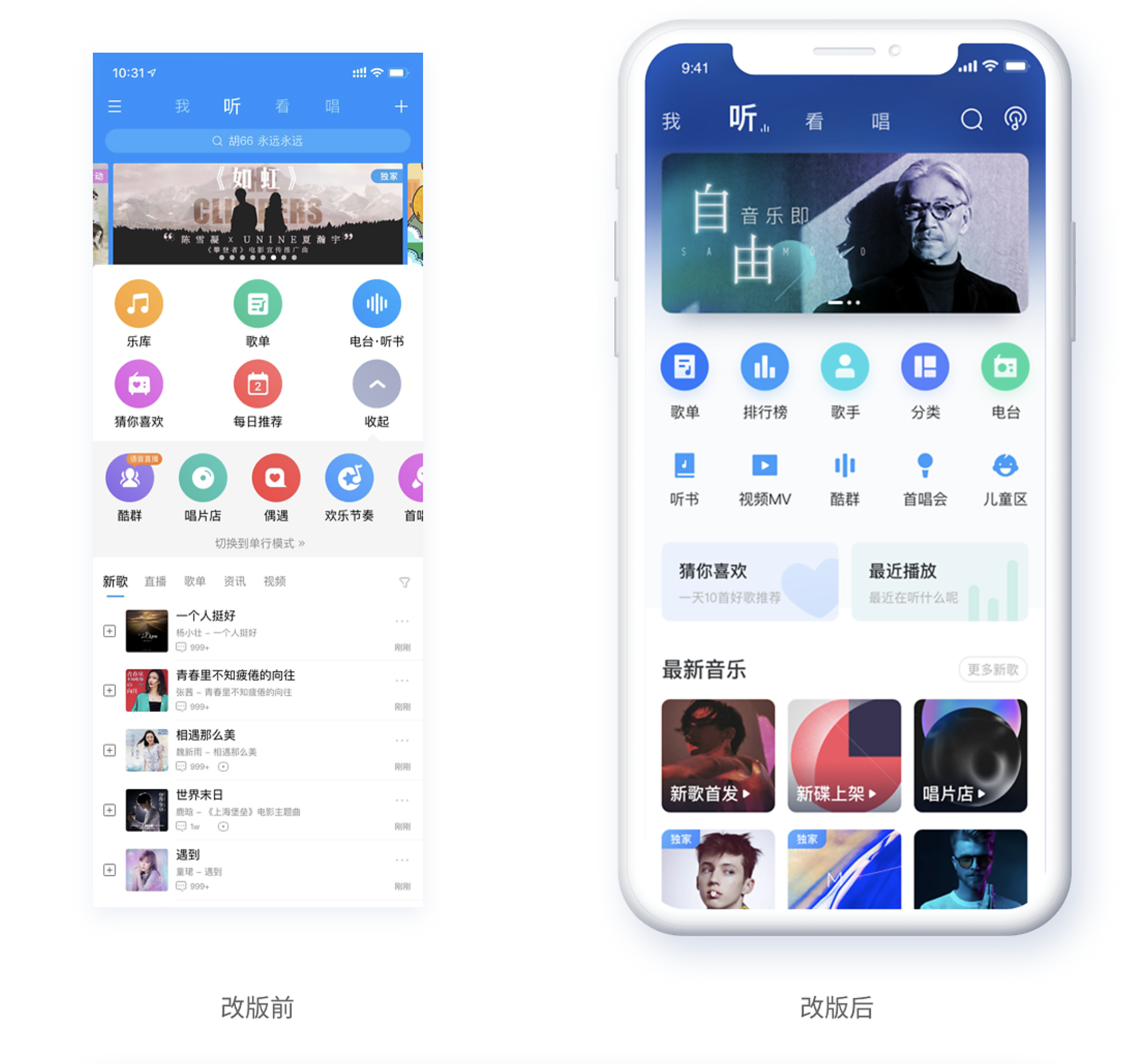 • 分析落地:根據(jù)資料和用戶畫像,確定設計目標,比如酷狗音樂改版要突出品牌感、提升界面年輕化和娛樂性。
