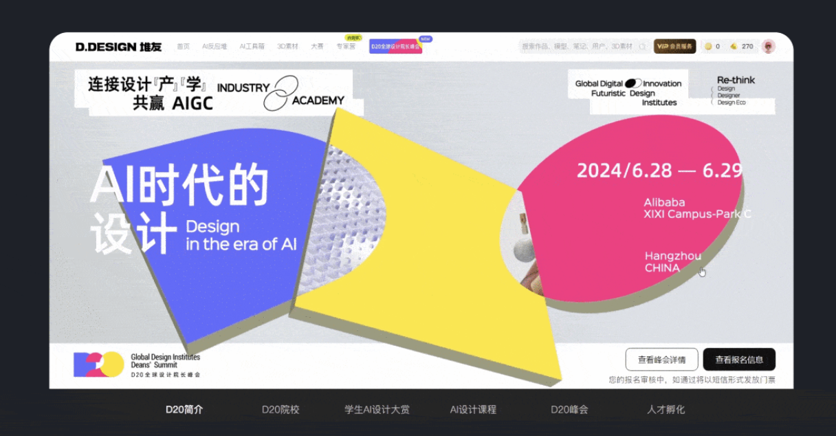 如果 B 端產(chǎn)品缺少體驗設(shè)計環(huán)節(jié),其落地呈現(xiàn)的往往只是研發(fā)邏輯,而非用戶需求和心智,無法提供合理的人機交互。體驗設(shè)計能打開用戶需求和心智的世界,讓用戶感受到產(chǎn)品是為自己量身定制的。由 Alibaba Design 發(fā)起的 D20 全球設(shè)計院長峰會官網(wǎng)首頁設(shè)計就很符合用戶心智,畫面簡潔時尚又不失動感,十分耐看。而且人性深處更容易被動態(tài)的事物吸引,下方的導(dǎo)航欄設(shè)計也很貼心,在電腦屏幕中完整展示,用戶想查看哪個部分,直接點擊對應(yīng)的導(dǎo)航欄就能精準跳轉(zhuǎn),無需長時間拖拽。