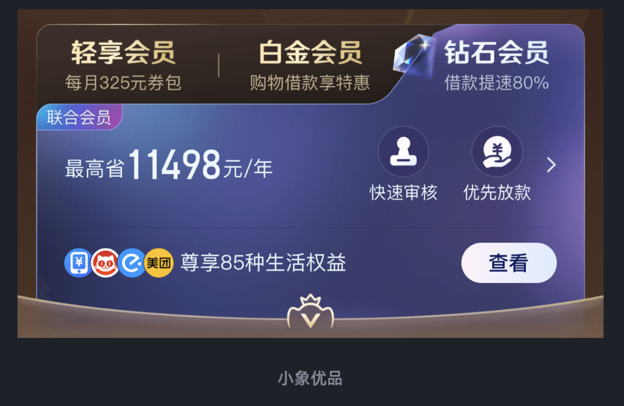 會員卡片的核心需求是 “區(qū)分等級”,但傳統(tǒng)設(shè)計多依賴 “顏色差異”(如青銅、白銀、黃金色),缺乏質(zhì)感層次,難以體現(xiàn)會員的 “尊貴感”。小象優(yōu)品的 PLUS 會員卡片設(shè)計,卻用 “光影細(xì)節(jié)” 和 “異形結(jié)構(gòu)”,讓等級區(qū)分更高級。