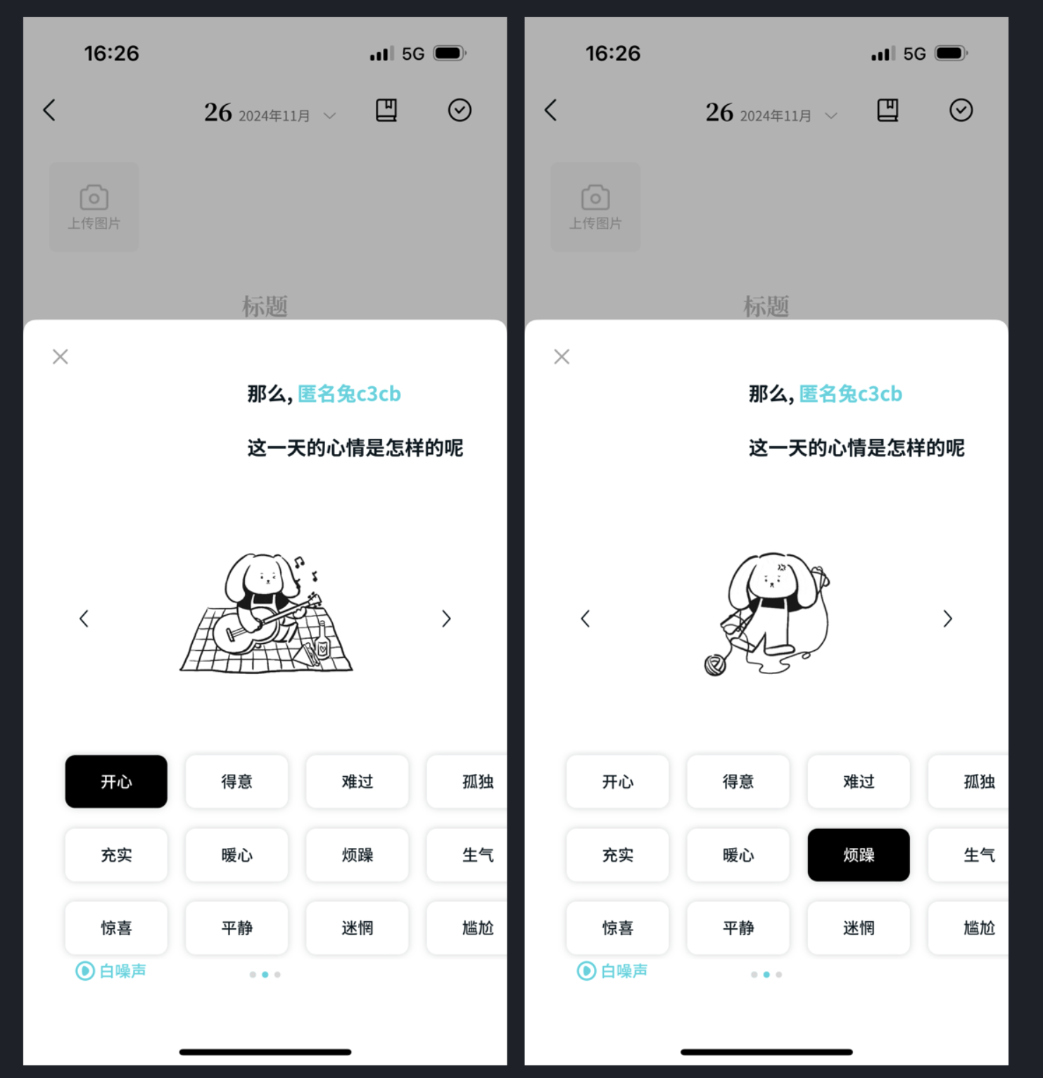 記日記時(shí)選 “心情標(biāo)簽”,是很多人記錄生活的習(xí)慣,但常規(guī)設(shè)計(jì)要么是單調(diào)的文字(“開(kāi)心”“難過(guò)”),要么是簡(jiǎn)單的表情符號(hào),總少點(diǎn)代入感。