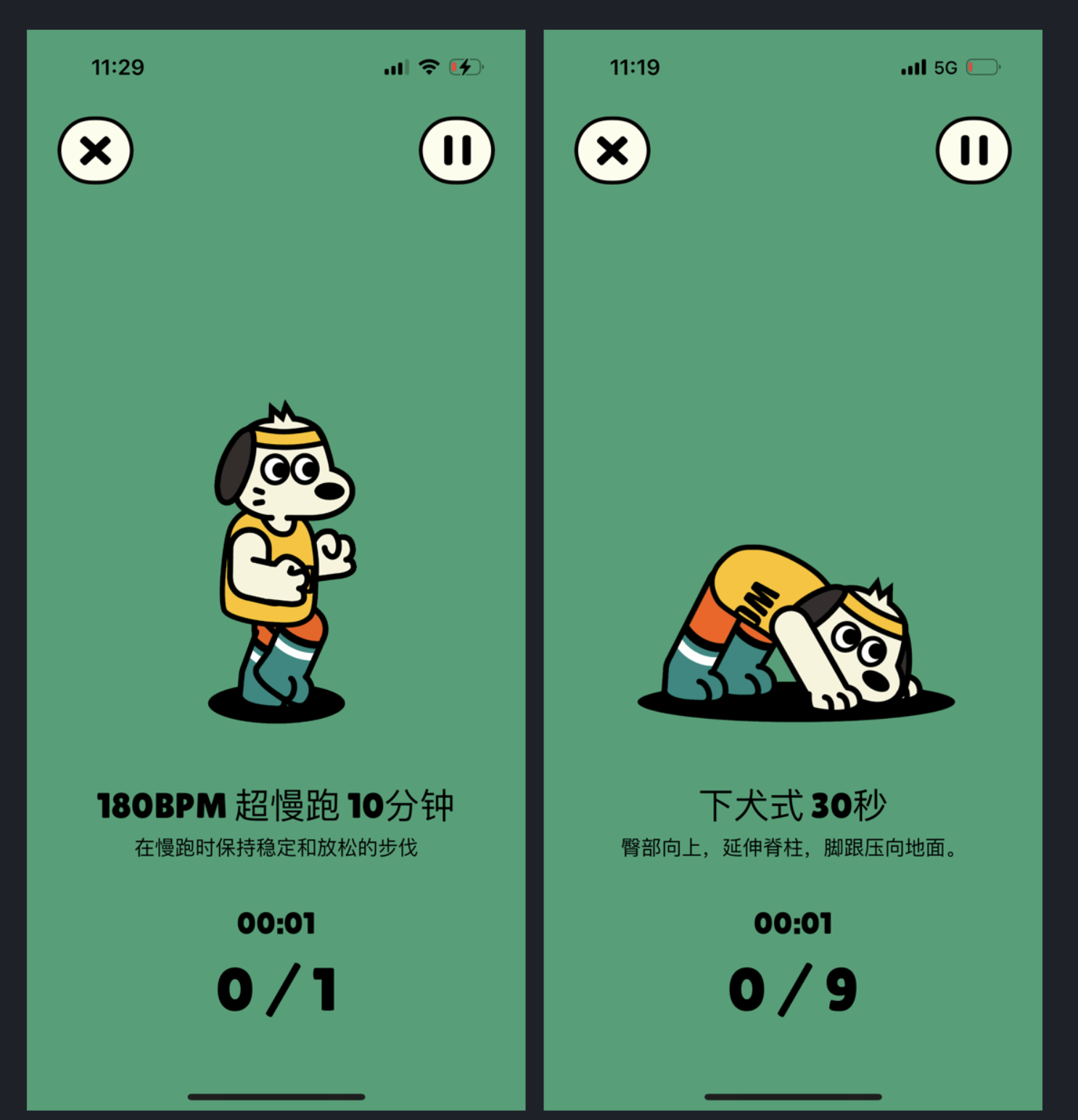 打開(kāi) Rumbo,全程有個(gè)圓滾滾的卡通角色跟著你:做 “下犬式” 時(shí),它會(huì)同步擺出同款姿勢(shì),還會(huì)用萌萌的語(yǔ)氣提示 “腳跟再往下壓一點(diǎn)哦”;完成一組動(dòng)作,它會(huì)搖著尾巴給你點(diǎn)贊。這個(gè) IP 形象不是簡(jiǎn)單的裝飾 —— 它把 “一個(gè)人運(yùn)動(dòng)” 變成了 “和小伙伴一起打卡”,減少了用戶(hù)的孤獨(dú)感;甚至有用戶(hù)說(shuō) “為了看它夸我,都愿意多練 5 分鐘”。