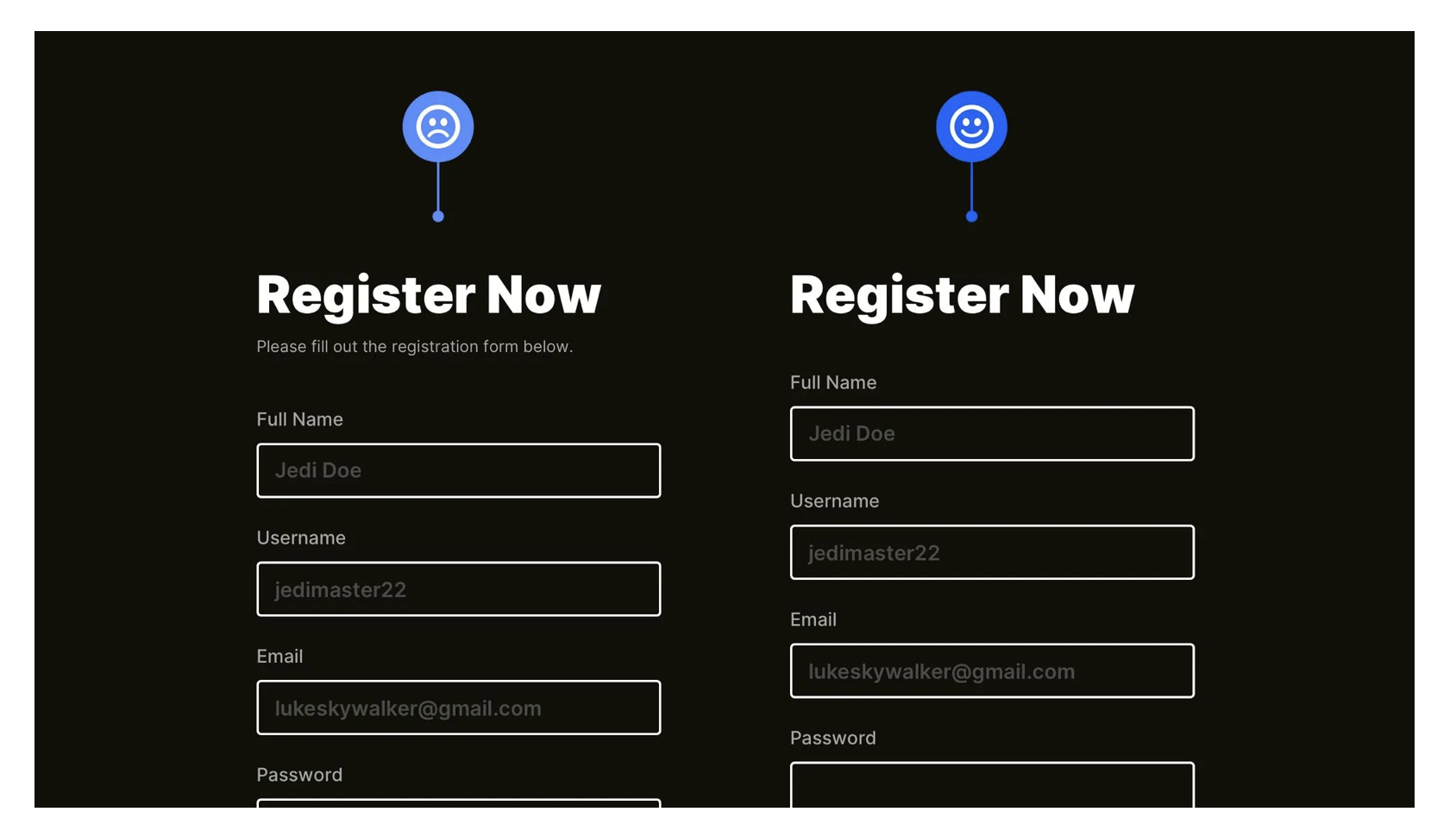 很多產(chǎn)品用 “紅色邊框” 提示表單錯(cuò)誤,但這種設(shè)計(jì)對(duì)色盲用戶無(wú)效 —— 他們無(wú)法分辨 “紅色” 與其他顏色,會(huì)完全忽略錯(cuò)誤提示,導(dǎo)致反復(fù)提交失敗。