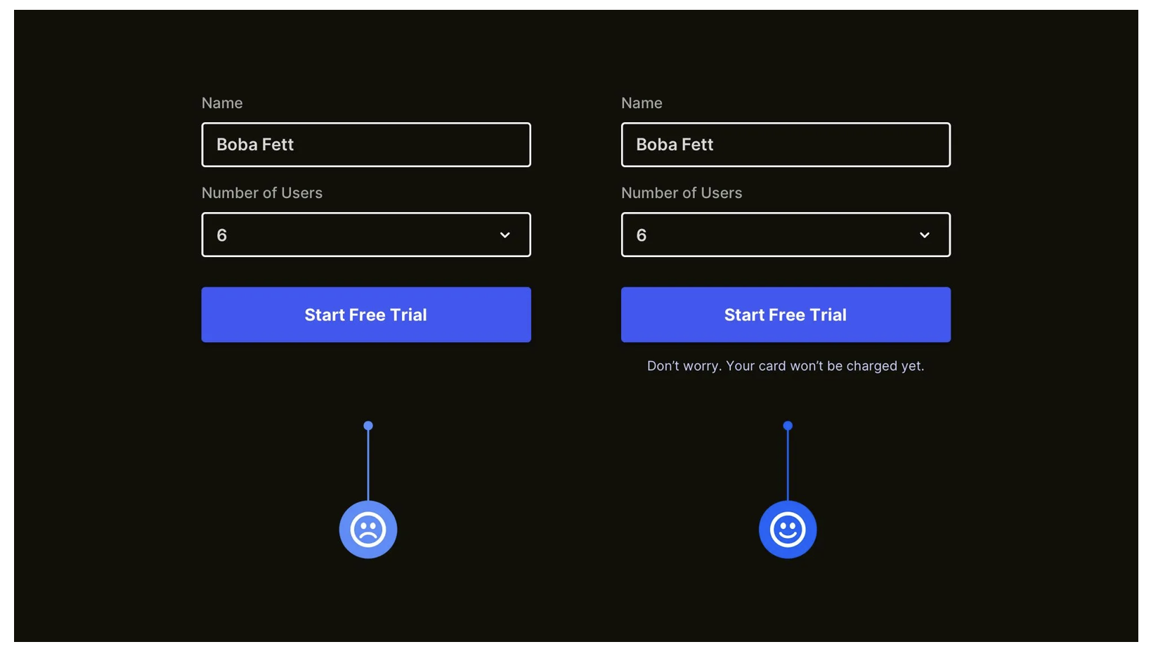 用戶對(duì) “未知操作” 會(huì)有天然顧慮:點(diǎn)擊 “免費(fèi)試用” 后,會(huì)不會(huì)自動(dòng)扣費(fèi)?填寫(xiě)手機(jī)號(hào)后,會(huì)不會(huì)收到垃圾短信?這些顧慮會(huì)讓他們猶豫是否點(diǎn)擊 CTA(行動(dòng)召喚)按鈕。