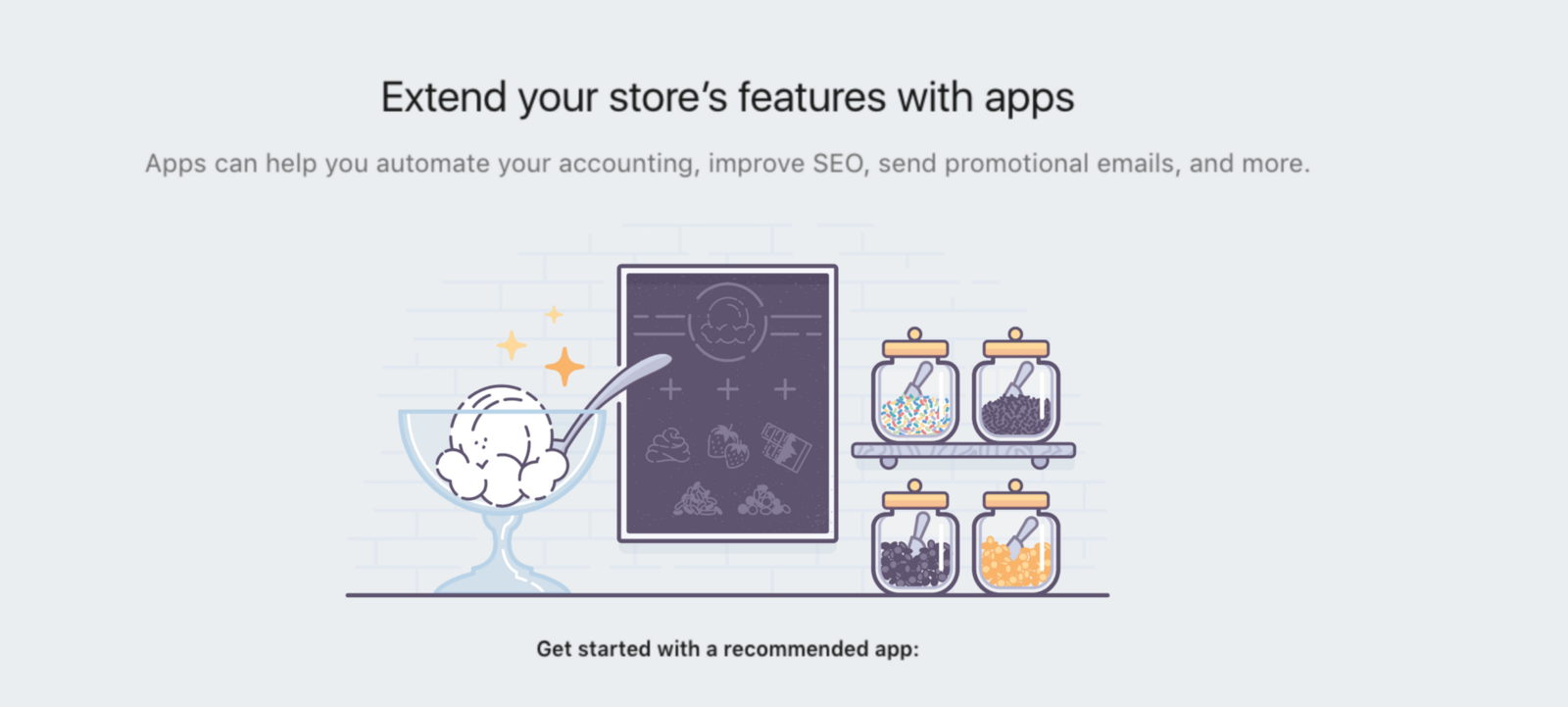 這個(gè)元素與那個(gè)元素在某刻具備相似性。如下圖所示,它不需要展示實(shí)際產(chǎn)品就能讓用戶理解。圖中并不是真正在討論冰激凌,而是通過(guò)插畫以比喻的方式傳遞了“正如用戶能夠按口味喜好用配料調(diào)制成個(gè)人專屬的冰激凌一樣,你也能根據(jù)自己的需要為利用我們提供的服務(wù)(App)來(lái)打造你的專屬店鋪”的理念。