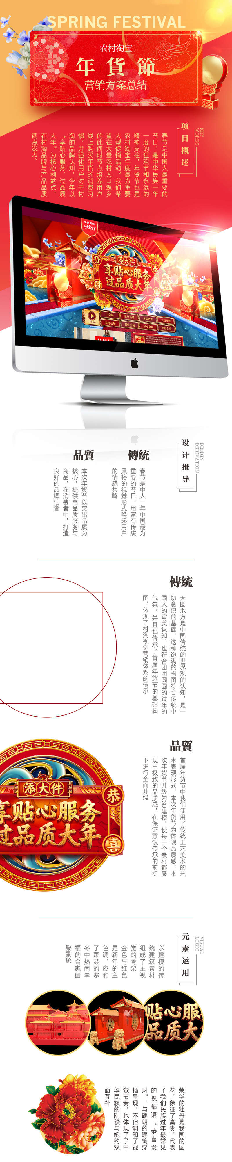元旦已立,新春即臨,這是中國人最重要的傳統(tǒng)節(jié)日,也代表了農(nóng)村淘寶年度最為重要大型促銷活動年貨節(jié)的即將上線。我們在本次大促之中除了完成常規(guī)的需求之外也進(jìn)行了多項創(chuàng)新性嘗試與自發(fā)的創(chuàng)新項目,包括針對線下營銷場景特點的視頻制作,創(chuàng)新大屏的全新功能上線等等。
