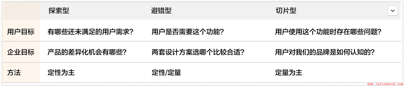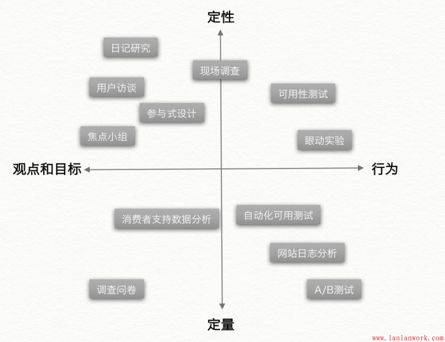 根據(jù)用戶研究的方法,可以分為定性研究和定量研究?jī)煞N。