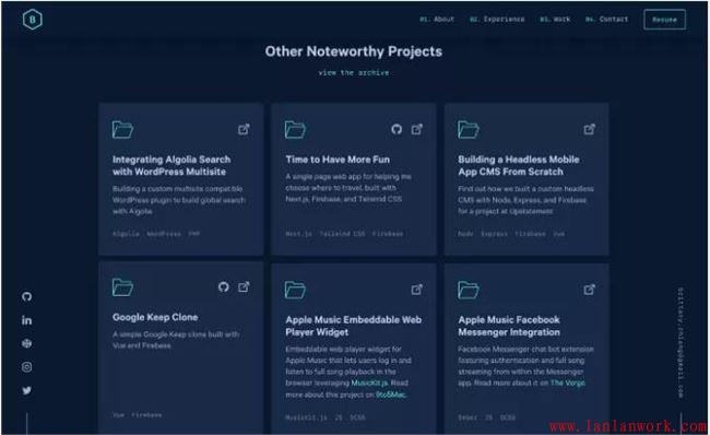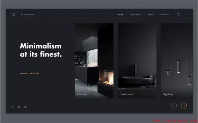 這兩個極簡主義的暗黑主題網(wǎng)站都使用了粗體字體。小心地使用單一強調(diào)色的陰影,以符合暗黑模式UI設(shè)計原則。