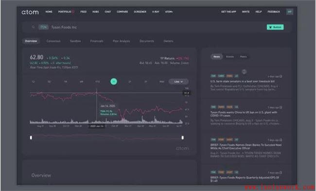 Atom Finance為復(fù)雜的外觀使用了黑色主題,并將顏色限制為三種。布局使用負空間,極簡設(shè)計。該網(wǎng)站使用微妙的陰影很好地表明不同的組件在用戶界面標(biāo)高。