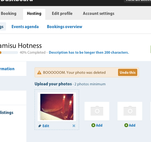 文案 :網(wǎng)站當(dāng)中隨處可見簡短而幽默的文案,譬如“你好啊靚人!”、“嘭!你的照片被刪除了”等等。