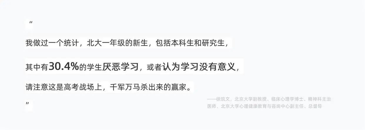 “教育是有滯后性的”作為老師或是家長(zhǎng),應(yīng)該對(duì)這句話很有感觸。學(xué)生在心智尚不成熟的階段,對(duì)于學(xué)習(xí)的動(dòng)機(jī)多來(lái)自外在。北京大學(xué),中國(guó)最高學(xué)府之一的教授就在訪談中表示: