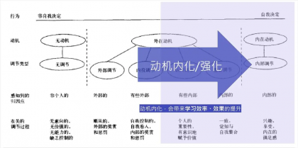 回歸到自我決定理論來(lái)看,大部分學(xué)生都處在非自我決定的階段,以無(wú)動(dòng)機(jī)或外在動(dòng)機(jī)的外部調(diào)節(jié)和內(nèi)投調(diào)節(jié)為主,他們對(duì)學(xué)習(xí)沒(méi)有動(dòng)機(jī),很難堅(jiān)持。從動(dòng)機(jī)側(cè)來(lái)看,我們要做的是把學(xué)生的動(dòng)機(jī)內(nèi)化/強(qiáng)化,去提升學(xué)習(xí)效率和學(xué)習(xí)效果的提升。