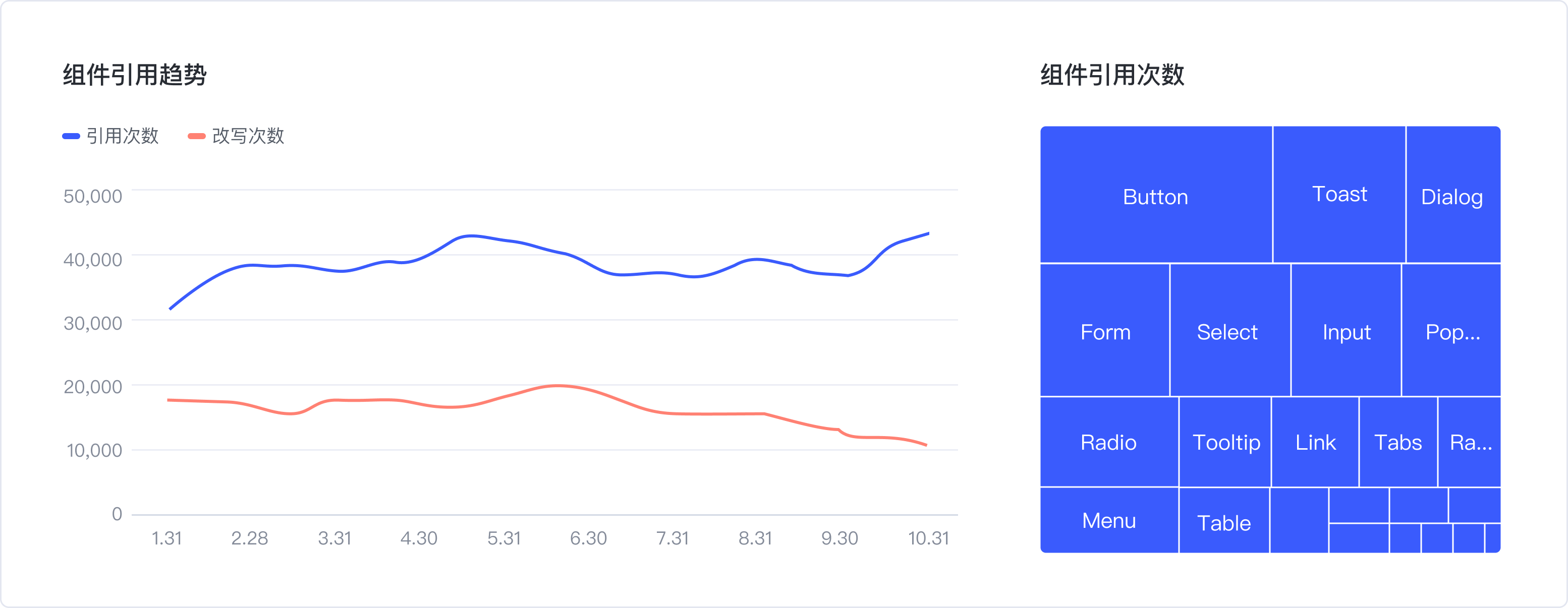 1.引用規(guī)模-即有多少平臺(tái)用到了組件庫(kù)。