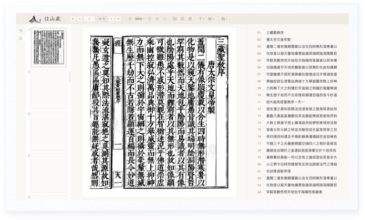 閱讀和操作區(qū)域分開,所有按鈕置頂集中排布,操作區(qū)盡量簡化,閱讀時減少干擾。左側有目錄和縮略圖切換。