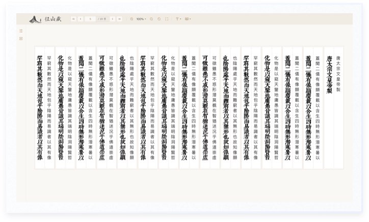 古書按列呈現(xiàn),每一列都制成為長卡片,古體字和簡體字一一對應,內容和背景區(qū)分開且大量留白,列與列劃分明顯