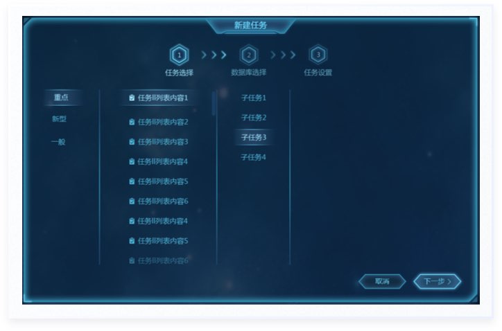 視覺(jué)方面使用大屏常用的深色背景,主色采用藍(lán)色配色,通過(guò)整體排版,元素的設(shè)計(jì),來(lái)凸顯科技感。頁(yè)面布局方面,采用模塊化布局,便于區(qū)分信息類別;扁平化的視覺(jué)元素+框式設(shè)計(jì),最大程度地減少頁(yè)面元素的干擾,提升頁(yè)面內(nèi)容承載量。