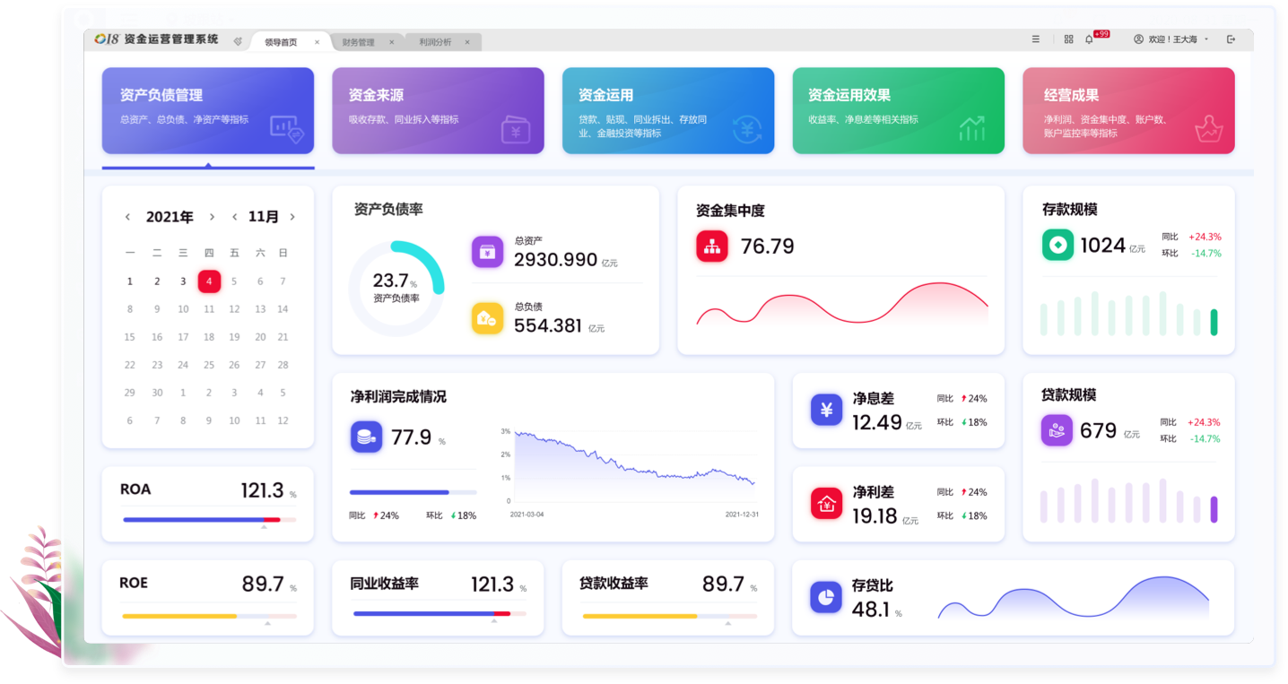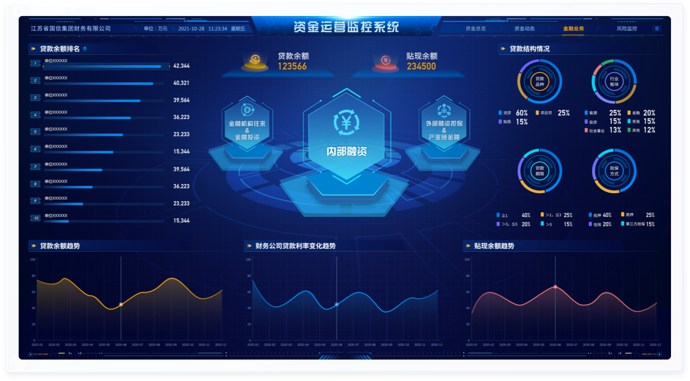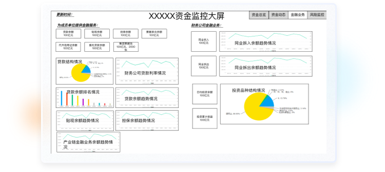 北京九恒星科技股份有限公司是一家企業(yè)資金管理軟件產(chǎn)品及企業(yè)金融信息增值服務(wù)的提供商,致力于通過(guò)信息技術(shù)的應(yīng)用,幫助企業(yè)改善現(xiàn)金流;在金融機(jī)構(gòu)與企業(yè)之間架起橋梁,讓企業(yè)的資金流更加順暢。大屏主要應(yīng)用場(chǎng)景,公司會(huì)議,集團(tuán)視察,行業(yè)參觀等。領(lǐng)導(dǎo)駕駛艙主要應(yīng)用場(chǎng)景:財(cái)務(wù)公司各級(jí)領(lǐng)導(dǎo)日常運(yùn)營(yíng)決策查詢,公司會(huì)議等,是系統(tǒng)重要的展示功能,可作為系統(tǒng)特色功能或是門(mén)面,使用較為頻繁。